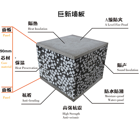 巨新輕質(zhì)墻板由硅酸鈣板、水泥、聚苯顆粒、多種輕集料組成所以保溫。